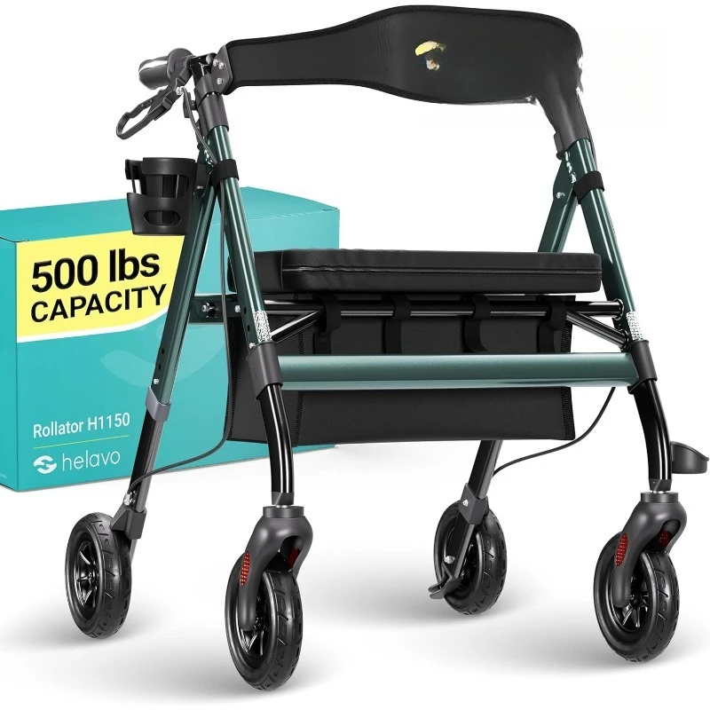 Versatile and Easy to Transport: Featuring 8" wheels with reinforced spokes, the foldable walker ensures smooth maneuverability and stability across various surfaces. Its compact folded size of 37.8" x 28.3" x 13.8" and lightweight construction (21.4 lbs) make it easy to transport and store.