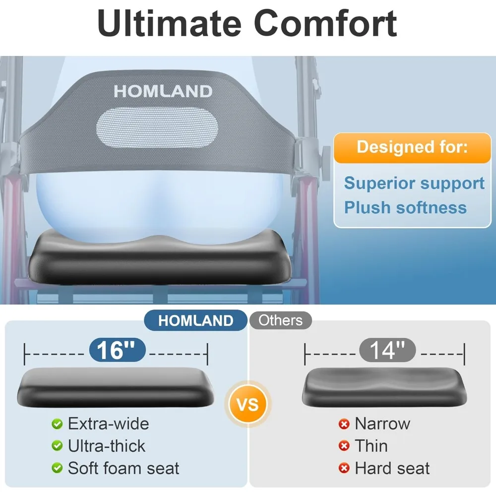 Foldable Rollator Walkers with Seat for Seniors, 8'' Big Wheels, 350 lb. Weight Capacity, Adjustable Handles and Seat Height