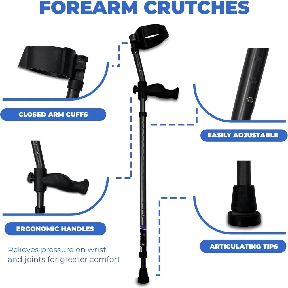 • QUALITY CONSTRUCTION: Built for long-lasting strength, our crutches support up to 350 lbs. Lightweight at 1.8 lbs per crutch, these crutches provide reliable performance without added bulk. Arm crutches forearm for adults have heavy-duty construction for lasting use. Reinforced handle design for extra strength. Lightweight & dependable for everyday mobility.